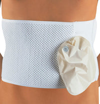 Comfortable support binder with a reinforcing plastic panel designed to manage parastomal hernias. The circular opening is adjustable in size and the velour-lined panel is removable. Height is 22 cm. Bag not included.