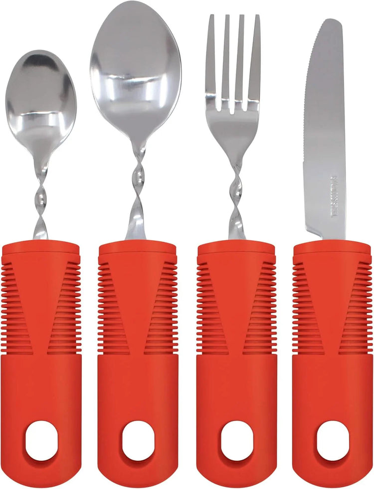 This four-piece set includes commonly used cutlery and is suitable for everyday meals at home or in care settings. All pieces are made from durable, dishwasher-safe materials for easy cleaning.