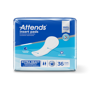 Attends Insert Pads are designed for moderate incontinence and provide discreet, reliable protection. These pads can be worn with mesh or knit pants for a secure and comfortable fit. The 24.75" length offers full coverage, and the poly outer layer adds an extra layer of leak protection. With a stay-in-place adhesive strip and odor control features, these insert pads help maintain comfort and confidence throughout the day. They're also a helpful option for post-partum or acute care needs.