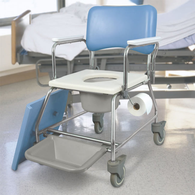 The MedPro Defense Aquacare Shower Commode is a versatile mobility aid that can be used as a toilet chair, shower chair, or bedside commode. It's designed for comfort, safety, and ease of use for both patients and caregivers.