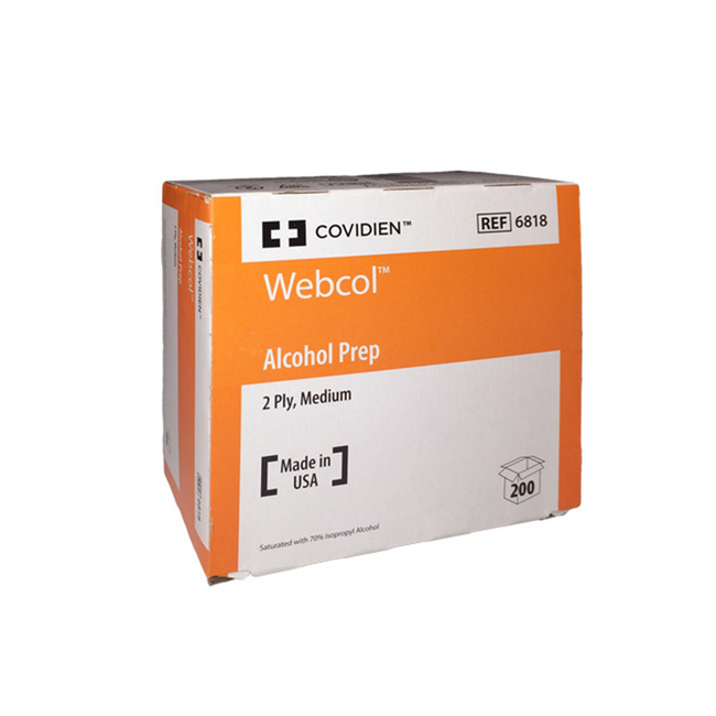 Covidien Webcol - Alcohol Prep Pads contain 70% isopropyl alcohol antiseptic to be used as a skin prep prior to skin puncture. Ideal for scrubbing and cleaning. These 2 ply, medium, non woven pads are made in the USA. Formerly known as Kendall Webcol Alcohol Prep Pads. Latex free. Sterile.