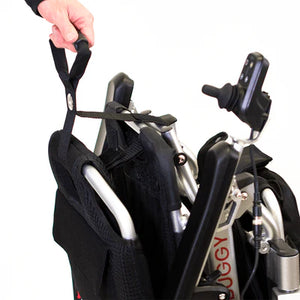 Simply attach the velcro around the footplate and the backrest, and roll your foldable power chair like a suitcase. This multi-purpose accessory can also be used for lifting your Travel Buggy into the back of your trunk. Buy 2 and have a friend carry the other side!