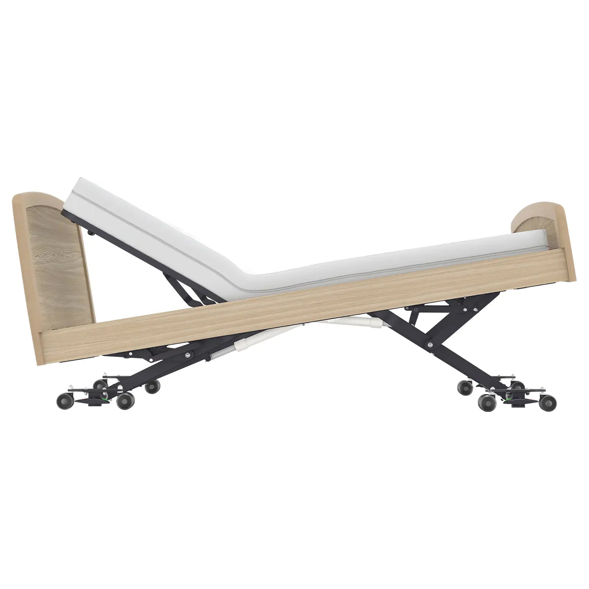The Empresa Hi-Low Hospital Bed is built to support quality care and comfort for both residents and caregivers. With a stylish yet robust frame, it adjusts in height, width, and length to suit a wide range of care needs, including bariatric support. Designed with safety in mind, it lowers to near-floor height to help prevent fall-related injuries and rises to a working height that supports safe care routines. The bed also features pre-programmed comfort and clinical positions to support pressure relief and ease of use.