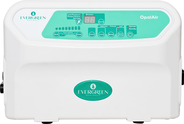 The Evergreen OpalAir is built for complex, high-risk clients who need serious skin protection and comfort. This full mattress replacement system combines alternating pressure with true low air loss therapy, delivering high airflow to help regulate temperature and humidity around the skin—key for healing and prevention. With the same easy-to-use controls as the Palm but with enhanced airflow and clinical features, the OpalAir is ready to meet the needs of clients from Stage I to Stage IV pressure injuries.