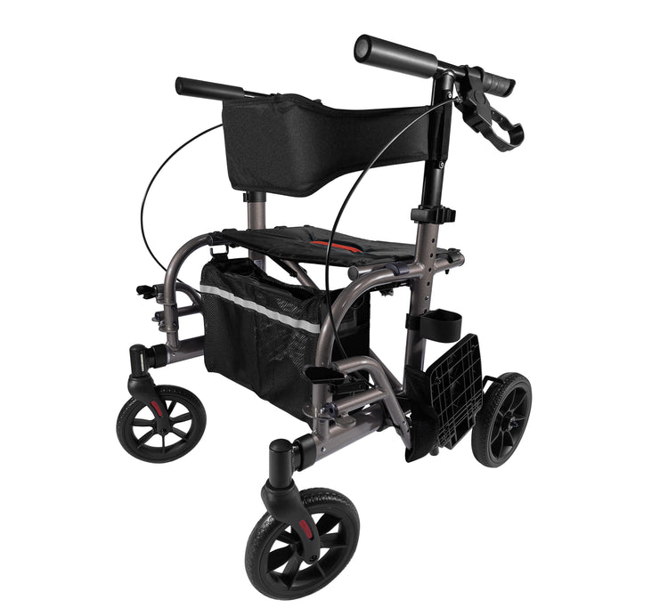 The Sierra Explorer includes seamlessly transitions between a rollator and a transport chair, giving you the freedom to move with ease. Whether you're running errands, traveling, or simply enjoying a day out, this lightweight and durable mobility aid ensures comfort, stability, and convenience. With an extra-wide back strap for support, a discreet covered tote bag, and an easy-folding frame for compact storage, the Sierra Explorer is built to support an active lifestyle.