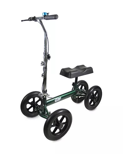 The Explorer Knee Scooter from Lighthouse Medical is a stable, all-terrain alternative to crutches. Designed for use during recovery from surgeries, fractures, or sprains, it features a four-wheel design for improved balance and a steering system for easy maneuverability indoors or outdoors. The contoured, adjustable knee pad provides comfort and support while reducing strain during movement.
