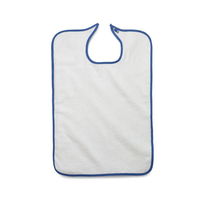 Designed for durability and comfort, this heavy-weight terry cloth clothing protector offers dependable protection from spills while remaining soft against the skin. Made from a 10 oz. cotton-polyester blend, it provides generous coverage and features a secure snap closure for easy on and off.