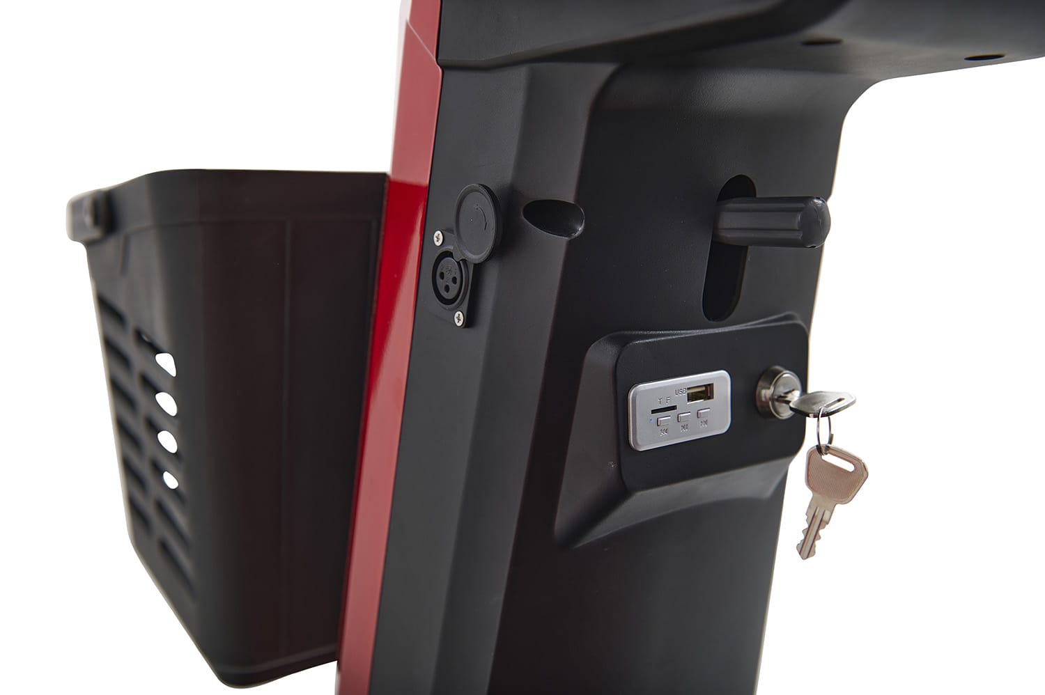 - Front and rear suspension for smoothly traversing outdoor terrain