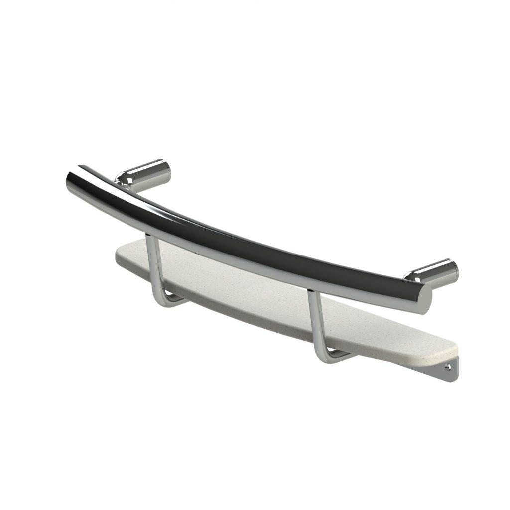 Store shampoo bottles and other shower products on a sophisticated shelf that incorporates reliable support for peace of mind in any shower space. The modern design cleverly disguises the support bar€”rated up to 500 pounds€”as an eye-catching decorative feature. The shelf tray is removable for easy cleaning, and is made from a non-porous material for added convenience.