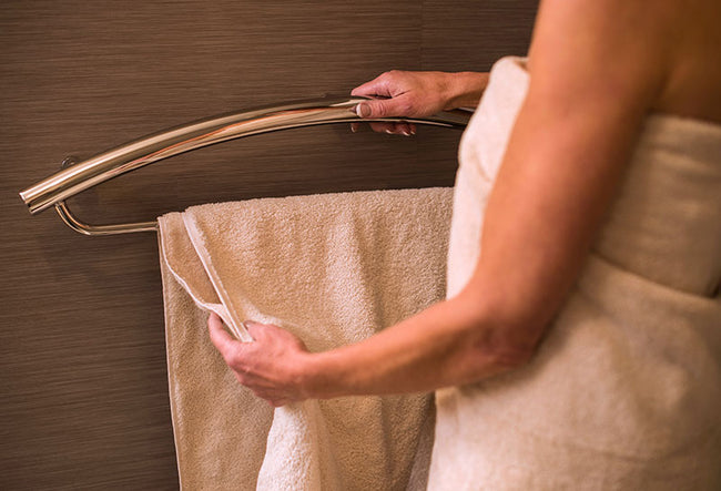 Invisia's sleek Towel Bar adds a modern and elegant touch to any bathroom. The unique design disguises the grab bar feature as a luxurious bathroom accessory for your towels. The Towel Bar offers convenience, supporting up to 500lbs / 227kgs, without sacrificing the look or feel of the space. With colour options that include polished chrome, stainless steel, and bronze, it is easy to find the perfect Towel Bar to compliment any bathroom.