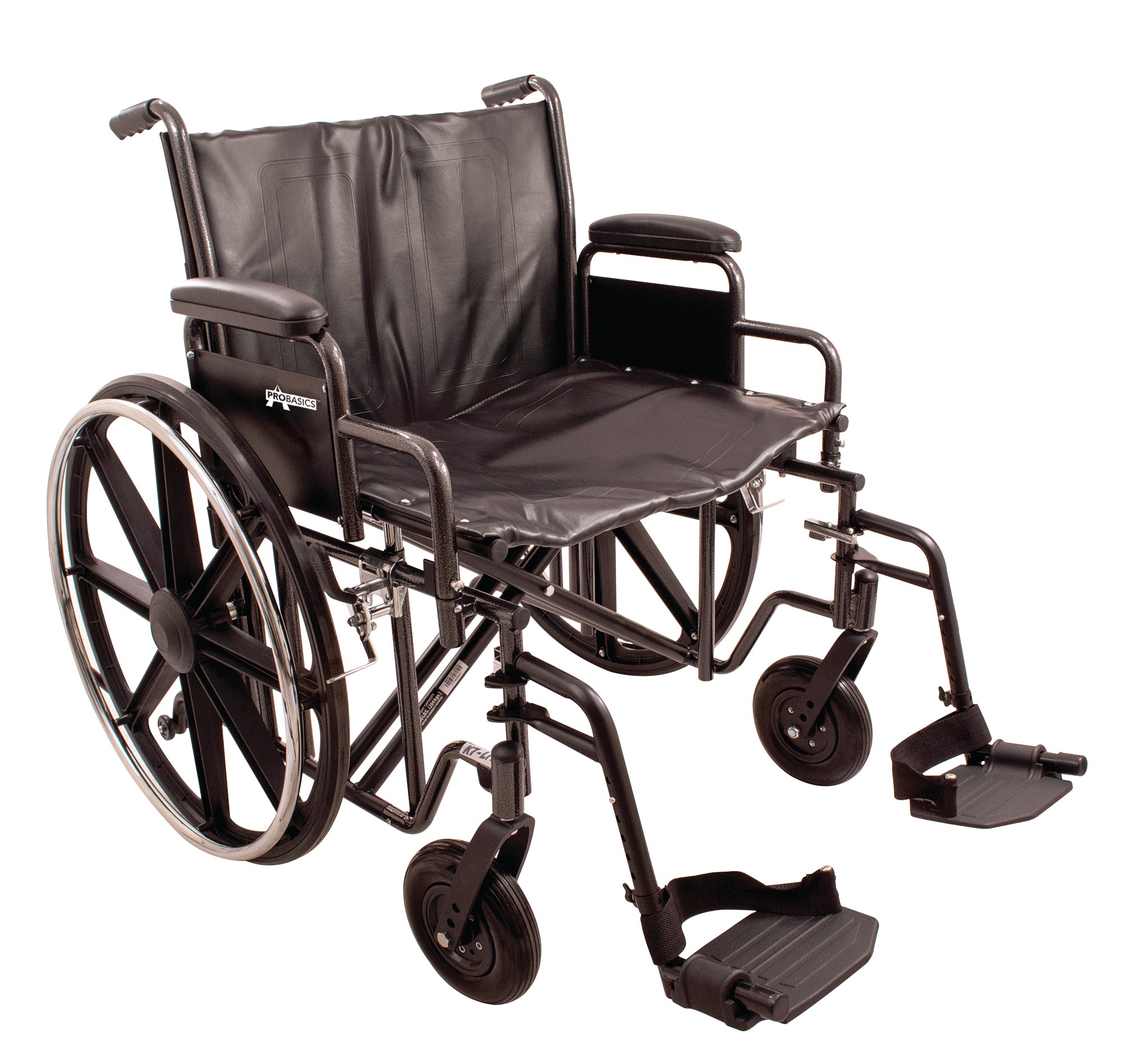 The ProBasics K7 Heavy Duty Wheelchair is a high-performance mobility solution designed to meet the needs of bariatric patients requiring extra-wide seating and high weight capacities. Engineered with a heavy-duty slide tube steel frame, this bariatric wheelchair provides long-lasting durability and stability. The sleek silver vein finish gives it a professional look, while its removable desk-length arms and padded upholstery ensure optimal comfort for daily use.