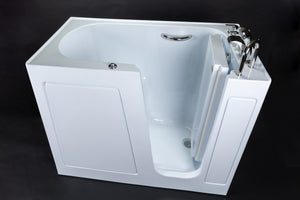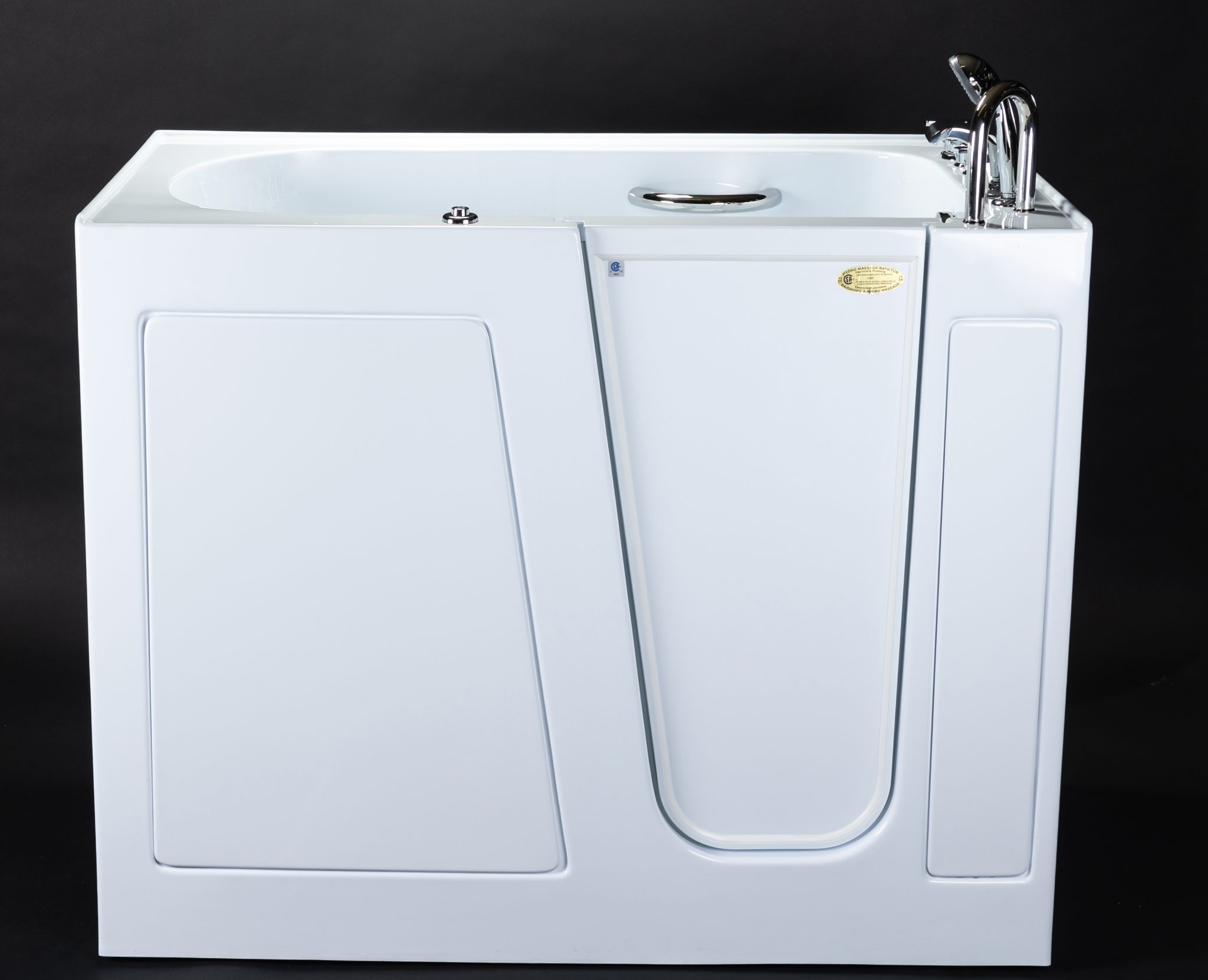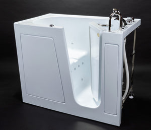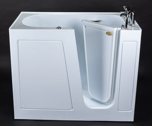 The Kananaskis is a deep soaking walk-in tub with an in-swing door, offering more interior space than most in-swing models. It's ideal for those who prefer stepping in and sitting down before closing the door, thanks to its roomy interior and user-friendly design. Taller and longer than standard tubs, the Kananaskis gives you the space to stretch out and enjoy a full, relaxing soak.