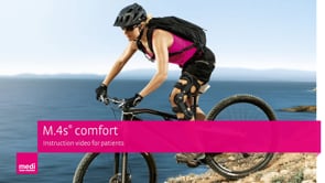 The M.4s Comfort is a 4-point functional knee orthosis used to support therapy by permitting the natural range of motion of the knee, while at the same time reliably stabilizing the joint. It helps with pain reduction and recovery of mobility, has a secure fit due to the physioglide hinge, and has divided strap cushions to relieve pressure.