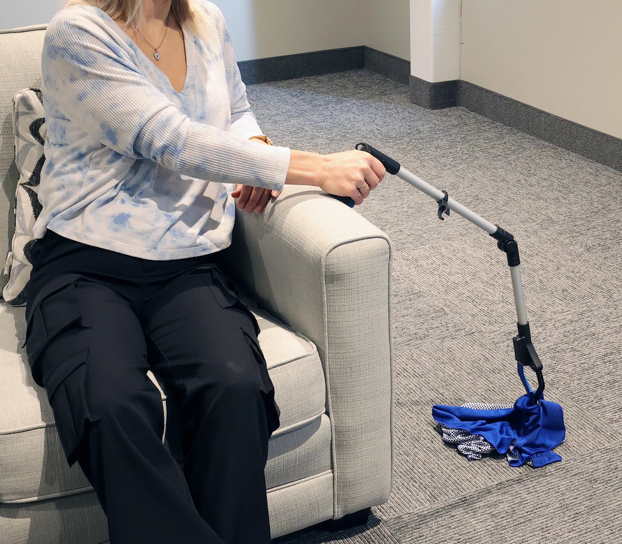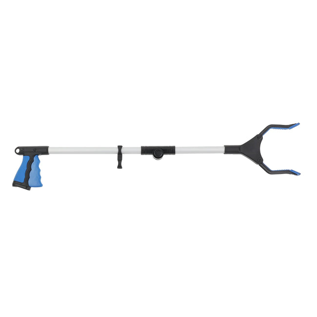 The Multi-Angle Reacher locks at 45°, 90° and 180° for a convenient way to pick up hard to reach items and the integrated light will illuminate any area for better visibility. Simply fold the reacher and secure with folding clip for easy storage and travel.
