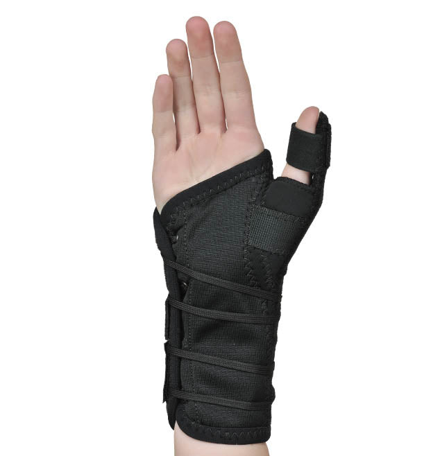 The Active Wrist Thumb Lacer is similar to the Active CT Lacer but also provides immobilization of the thumb.