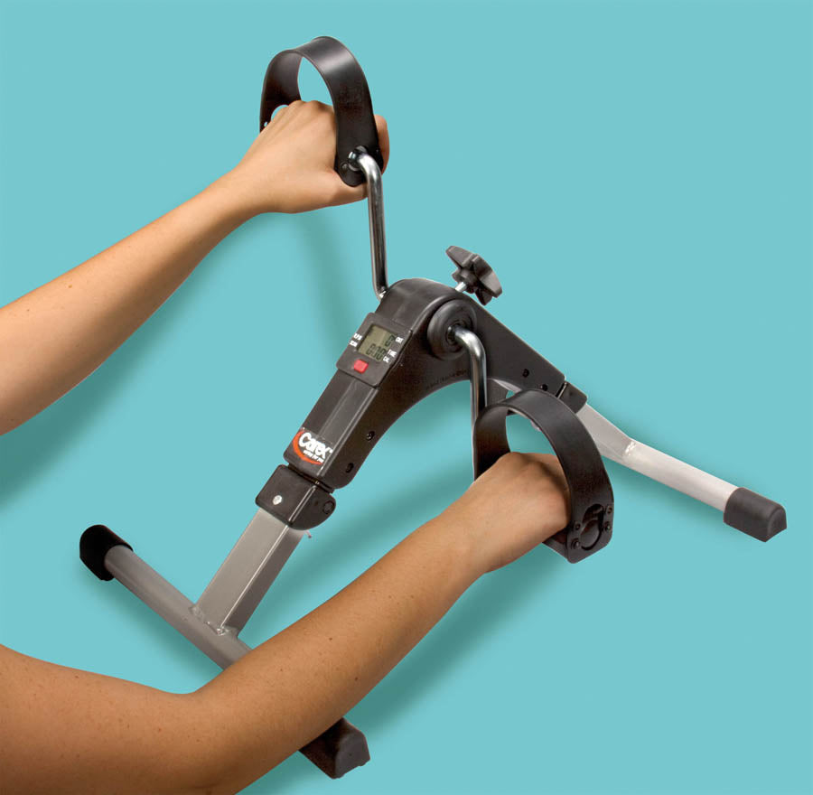 his compact pedal exerciser is a simple way to stay active, whether you're working on upper or lower body strength. Use it on the floor for leg workouts or place it on a table to exercise your arms. The easy-to-read digital display tracks time, repetitions, and calories burned, while adjustable resistance lets you set the pace. Velcro straps keep your feet secure during use, making it a great option for users with limited mobility.