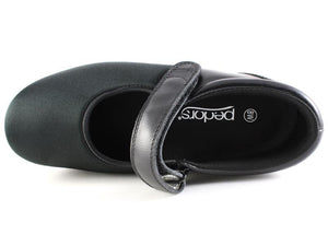 Designed for people with Diabetes and Arthritis, but with the more feminine look. The closure is an Adjustable strap that maintains the ability of the shoe to stretch throughout the day to accommodate swelling that may take place. Beneficial to people with corns, bunions, hammertoes, Neuromas, poor circulation or fluid gathering in the feet. Features an adjustable closure for easy fitting and a removable insole for custom orthotics. PLEASE NOTE: The Mary Jane is currently running approximately one whole size big- if you would normally order size 9, you should order a size 8 in the Mary Jane.