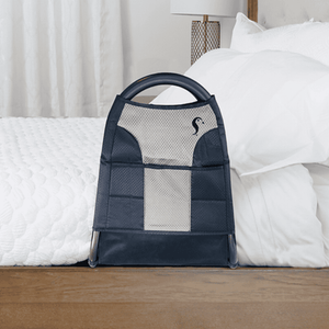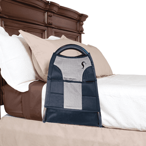 This transfer rail easily disassembles and fits in most carry-on luggage, including a stylish travel tote included for convenient transport. It securely installs between your mattress and bed frame, working seamlessly with any home or hospital bed, providing up to 300 lbs of support for safe and effortless transfers.
