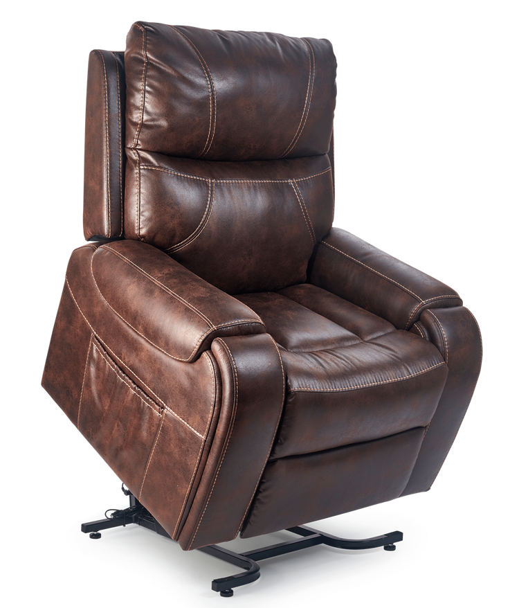 The Titan with Twilight is a medium-sized power lift recliner designed to deliver ultimate comfort and luxury. Featuring an overstuffed seamed back, a plush chaise pad, and an array of premium features, this chair provides hours of relaxation. The 5-Zone Comfort Zone Positioning System allows for limitless positioning options, incorporating patented Twilight Technology and MaxiComfort® Positioning for superior support. The adjustable headrest and lumbar support, controlled via the programmable AutoDrive hand control, ensure personalized comfort at the touch of a button.