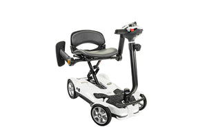 The Transit 4 Scooter is a compact, electrically foldable mobility scooter designed for easy transport and everyday convenience. Folding and unfolding can be done electronically using the included remote control or directly with the push of a button.