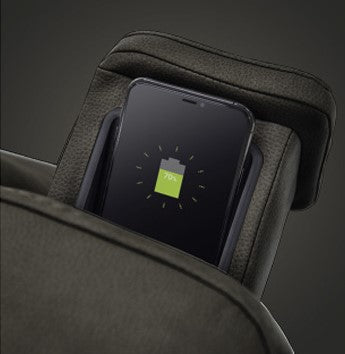 - Hideaway wireless charging station conveniently charges your phone Hideaway cup holder keeps your beverage close at hand