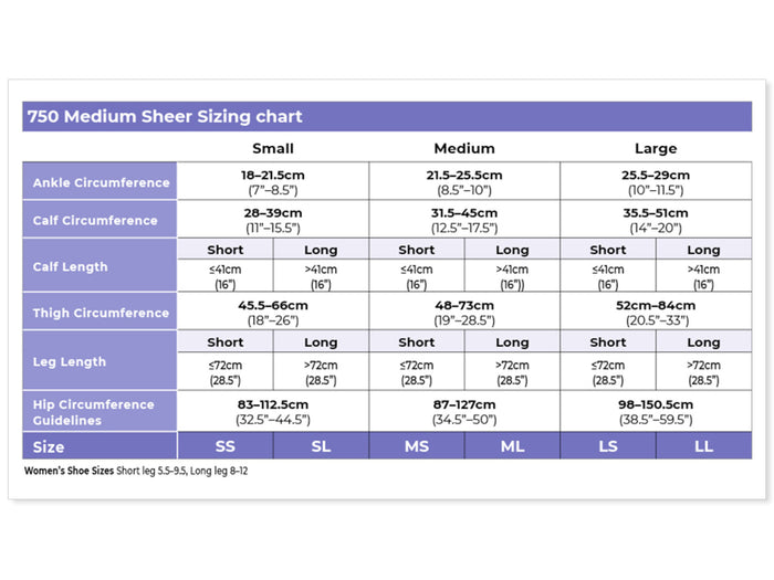 *Thigh High garments have a silicone band at the top of garment to prevent slipping and rolling.